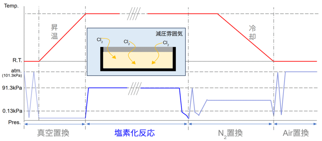 ガス雰囲気 | Cl2, HCl, N2, Ar, H2 |