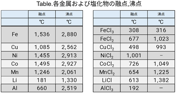 - 発生した塩化物の沸点を降下でき、より低温での処理が可能